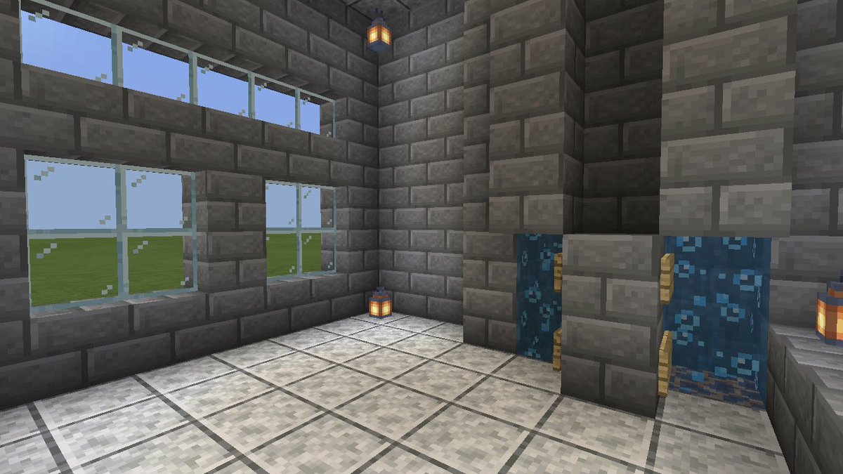 かんピィイイイです アルファベットハウスシリーズ B 石レンガ造りで 床は大理石と高級感のある家です 家の中にはなんと エレベーターが設置されています 二階には もちろん作業 収納スペースを確保しております b マインクラフト